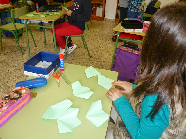 Sumámonos a proposta de realizar unha flor a Rosalía e coñecer a esta poeta e escritora. Esta semana recitaremos algunhas das súas poesías. Deunos algo de traballo eso de dobrar papel, pero descubriron que aparecían moitas figuras xeométricas. As nosas flores.